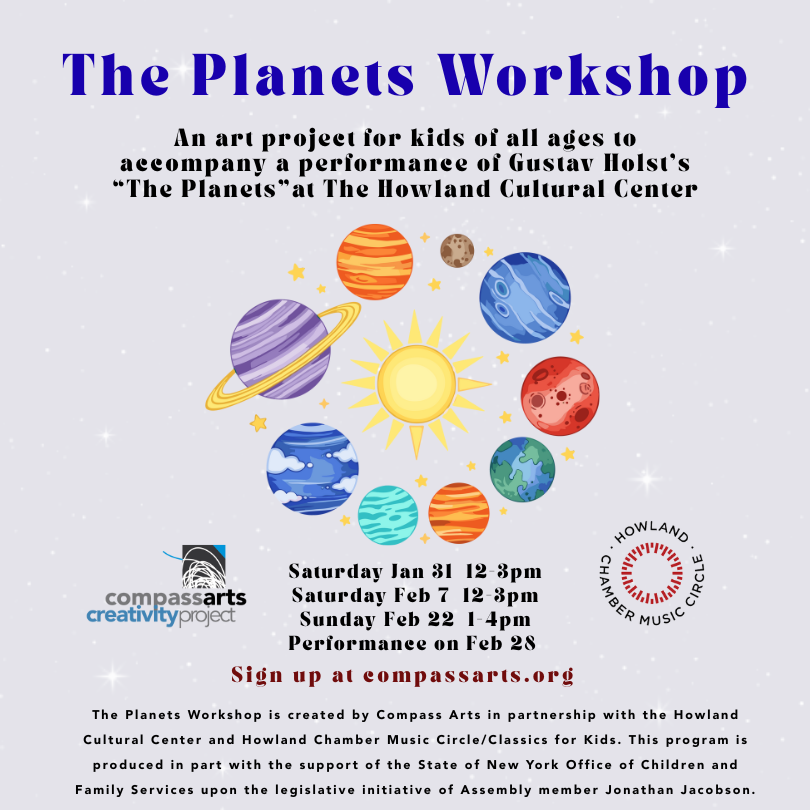 There are three workshop sessions for children to participate in on 1/31, 2/7/ and 2/22. CLICK HERE to sign up for the workshop. Please note that the Planets Workshop is a separate admission from the concert.